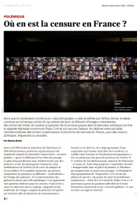 While the mobilization against the "global security" law has been amplified by the Zecler affair, the debate continues on the famous article 24, which provides for the punishment of the diffusion of malicious images. of the police forces. And raises the question of censorship even in the artistic field, as the episode concerning Paolo Cirio and his work Capture reminds us. Beyond this topicality, many artists denounce the persistence of a form of censorship in France, for political, religious or social reasons.