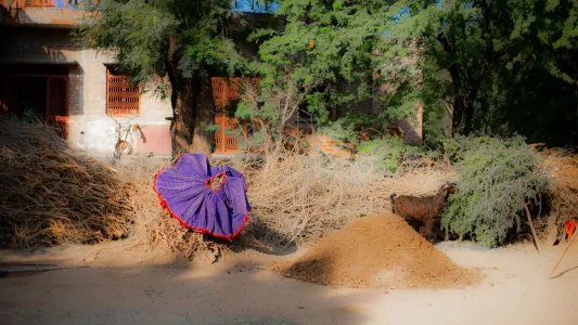 Often during the day, I would walk around and visit all of our farming neighbors, communicating minimally with hand gestures and laughs. I played with the kids. I learned how to sickle weeds, milk the buffalo, clean the dishes, cook the food and make chai by watching the women. They often laughed at how silly I was to be so interested in their work. I always praised them and told them (via translation apps) how amazing their work was to me and how impressive their skills were. These women were strong, resilient, and tougher than any woman I’d met before. There was something magical about them and I was obsessed. I’d watch them for hours. They’d teach me things and enlist me to help them sometimes, but I was always clumsy, unskilled, and unforgivably white. They would make fun of me for not knowing how to do anything. I was happy my incompetence could at least bring them great joy and laughter. With time, I got pretty good at sickling weeds. That was my favorite thing, and it was only time I really felt helpful and not a huge klutz just getting in their way. I began to interview many women, to ask them how they felt about themselves as women. What it means to be a woman in India, what their role was, how they felt about it. I would ask them about their community with other women, their spirituality, how they connected with the earth and with the goddesses. In the picture below, a skirt is hung upon the grasses. I saw skirts hanging like this on trees or bushes across all different villages in the area. I was told that when women were in a depression they would hang up their skirt to cleanse it of the bad spirit.