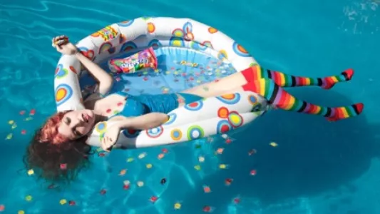 Edburg’s work originates from the in-between world of fiction and reality. Her concepts approach perverse extremes like death or suicide by consumerism. By using a naïve expression, she juxtaposes how easy it can be to lose control and cross boundaries of reality. Each piece of work is different, but they all happen to meet in the same place of tenderness, innocence and tranquility. Displaying the absurd contrast is the result of disturbing images where the death of women is caused by excess of food or beauty products.