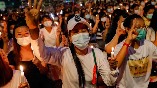 During protests a certain hand symbol is often used. It is referred to as the three finger salute. This symbolizes hope and the call for democracy. It is also said that the hand symbol is a substitute for the middle finger. Protestors do not want to attract more aggression and therefore change the symbol collectively.