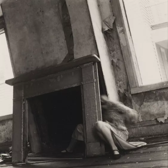 Woodman materializes these critical discourses through a formal composition, in which bodies struggle within a duration, resisting death and the incarceration. Still, this movement shows their dissolution, but gathers its traces. The critique of the photographic medium is the analysis of the relation between material and process, subject and object, perception and affection (House Series , Providence, Rhode Island, 1976).