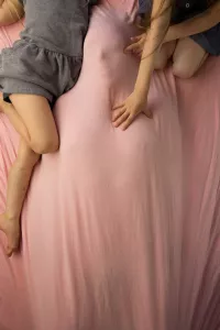 , for instance, we see a close crop of a naked, pregnant body whose bellies have been drawn on by a child with marker. Here the idea of mother becomes abstracted as it is used by one child to explore the idea of a future child. The body becomes an object both as an incubator and the object through which the existing child interprets the world. Wynne’s work also features a theme of older children being “born” underneath her clothes, making the point that just because they no longer need her womb, she is still an integral part of helping them grow. An excellent example of how she uses her “maternal body as a site for exploring the intense physical, emotional, and psychological interdependence of the mother-child relationship.”