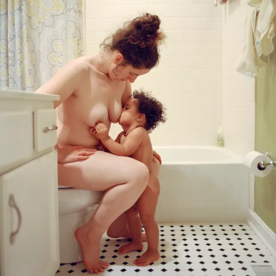 Simultaneously, she captures the discomfort of being a human food source as well as the love of the child-mother relationship. Ogier-Bloomer also incorporates the presence of her own mother in the work reminding us not only of her own future role as mother to an adult, but also to the importance of intergenerational support. A reminder that each mother is partly a result of the generations of mothering before her. Through her intimate images she strives to confront the unique “ways in which women feel the pull of motherhood, their children, and their physical self and appearance”.